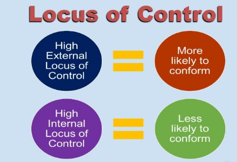 Finally, let’s explore one more small aspect of locus of control. The graphic to the left illustrates how locus of control affects conformity. Conformity has become a sort of buzz word with a negative connotation. However, let us remember we live in a society with rules and laws and economy and we all conform to one degree or another.